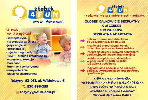 4Fun Pomorze – żłobek integracyjny Zapraszamy dzieci od 22 tygodnia życia do 3 lat ️ możliwość przedłużenia ...